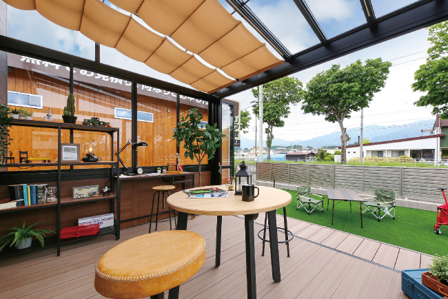 地面より一段高いスペースになります。タイル張り・土間コンクリート・ウッドデッキがおすすめ!テラス屋根を設けて開放感のあるくつろぎのスペースに。